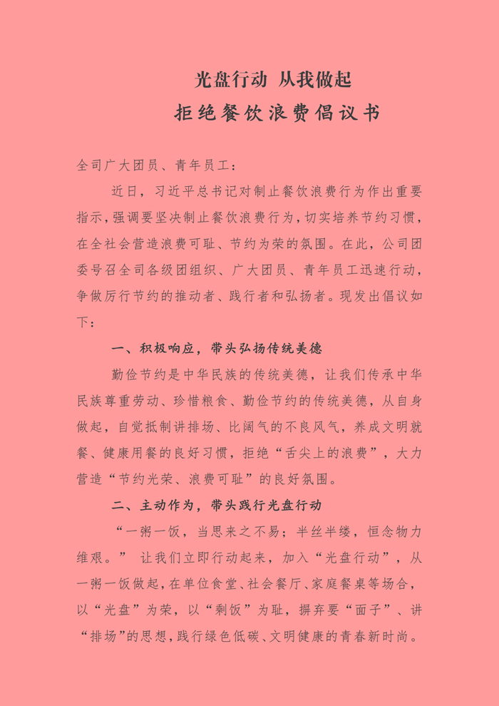 拒絕餐飲浪費(fèi)倡議書
