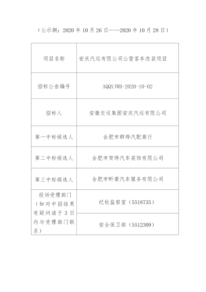 公司公營客車改裝項(xiàng)目中標(biāo)結(jié)果公示