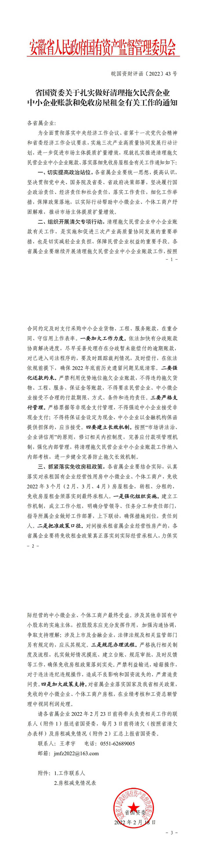 省國資委關于扎實做好清理拖欠民營企業(yè)中小企業(yè)賬款和免收房屋租金有關工作的通知